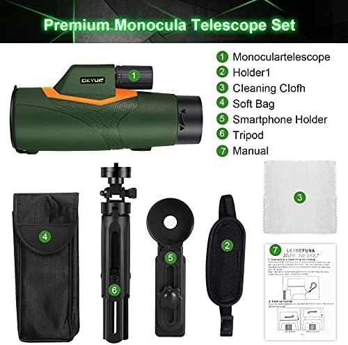 Smart phone monocular telescope, high-power star mirror telescope for wildlife watching bird hunting camping trip scenery with mobile phone stand and tripod, suitable for adults/students/photographers