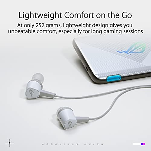 ROG Cetra II Core Moonlight White in-ear Gaming headphones feature ASUS Essence drivers made of liquid silicone rubber (LSR) for impeccable audio quality. The headset allows users to enjoy game-grade sound on a variety of platforms, including compatibility with PlayStation® 5, Xbox Series X/S, ROG Phone 5, mobile, PC, Mac, and Nintendo Switch™. The included ear fins and earplugs are also made of LSR for added comfort. The ASUS Essence Driver is made of liquid silicone and is designed to deliver more consistent speaker performance and incredibly powerful bass. The ROG Cetra II Core Moonlight White comes with a 90° connector that keeps the headphone cord off the road for increased comfort in portable gaming. The ROG Cetra II Core Moonlight White is made of stylish, lightweight aluminum for a striking, elegant look that is scratch-resistant for enhanced aesthetics and durability. The Moonlight White product family offers a range of new devices with a simple aesthetic. Use the ROG Strix Scope NX TKL keyboard, Strix Impact II optical sensor mouse, Strix Go Core headphones, Cetra II Core in-ear headphones, and Zephyrus G14 and G15 The moonlight white version of the game laptop is armed.