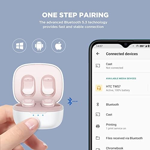 HTC True wireless headset 7 Bluetooth 5.3, in-ear headphones noise reduction, suitable for games, exercise -45ms ultra-low latency /22H playback time/Fast charging/dual mode /IPX4 anti-sweat/built-in microphone - black